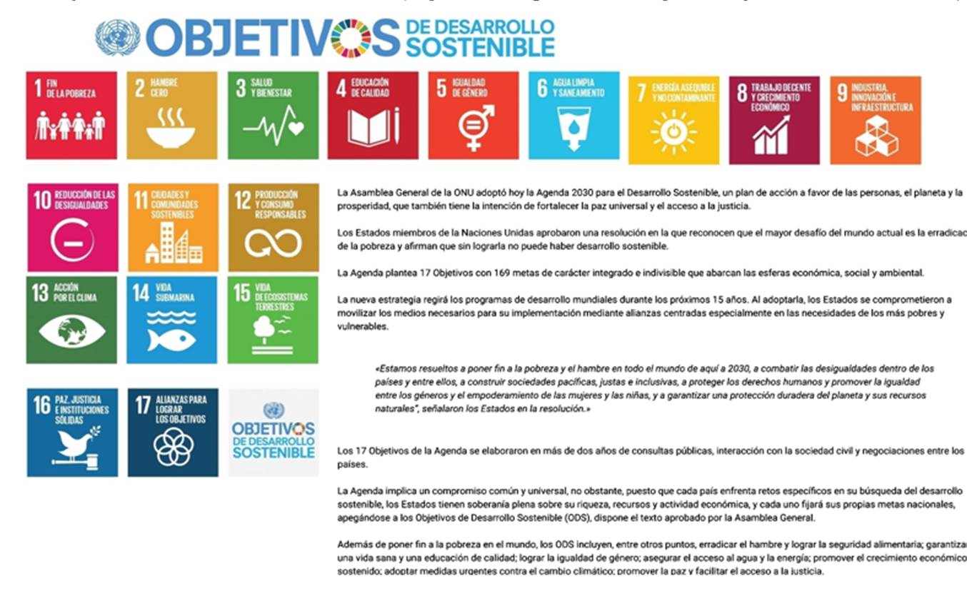de Desarrollo Sostenible de la ONU 2030. ( https://www.un.org/sustainabledevelopment/es/objetivos-de-desarrollo-sostenible/)